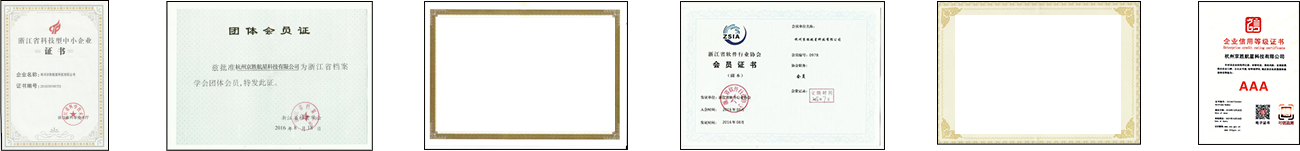 公司以“精益求精”宗旨打造产品,获得18项计算机软件著作权,8项智能档案柜专利,已取得ISO9001质量管理体系认证、ISO18000职业健康安全管理体系 认证、ISO27001信息安全管理体系认证、AAA企业信用等级认证、涉密档案数字化加工乙级资质等,是浙江省档案学会、浙江省软件协会、杭州市保密协会会员单位。