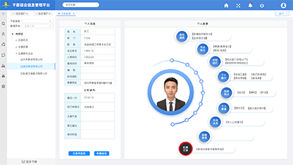 3、 干部研判:干部研判是针对干部本人进行分析研判,系统根据设定干部标签以及其他属性进行立体图形化展示。