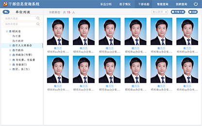 干部综合信息管理平台是建立干部信息大数据库的应用系统,主要包含统计分析、干部管理、干部查询、机构管理、干部名册等功能。